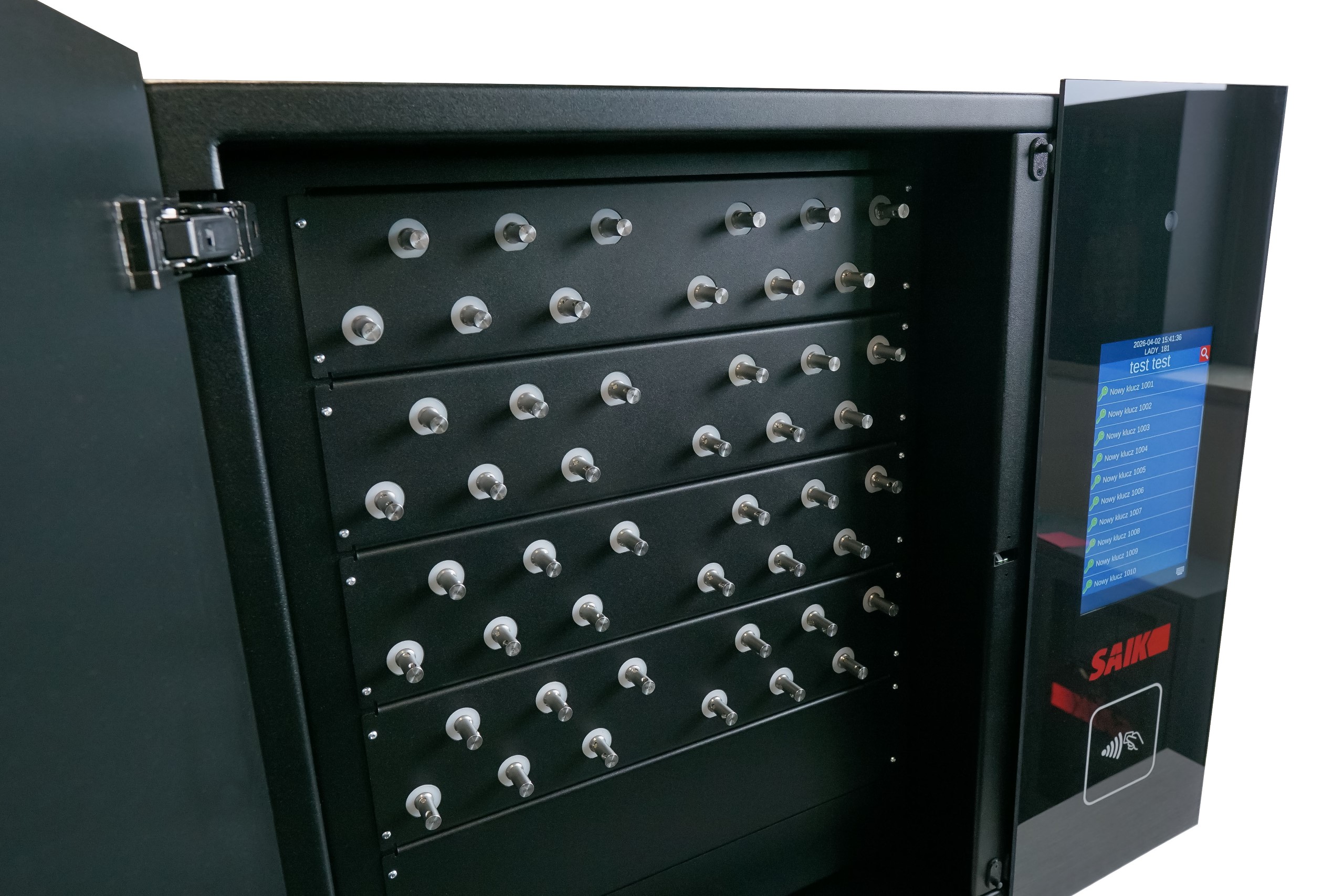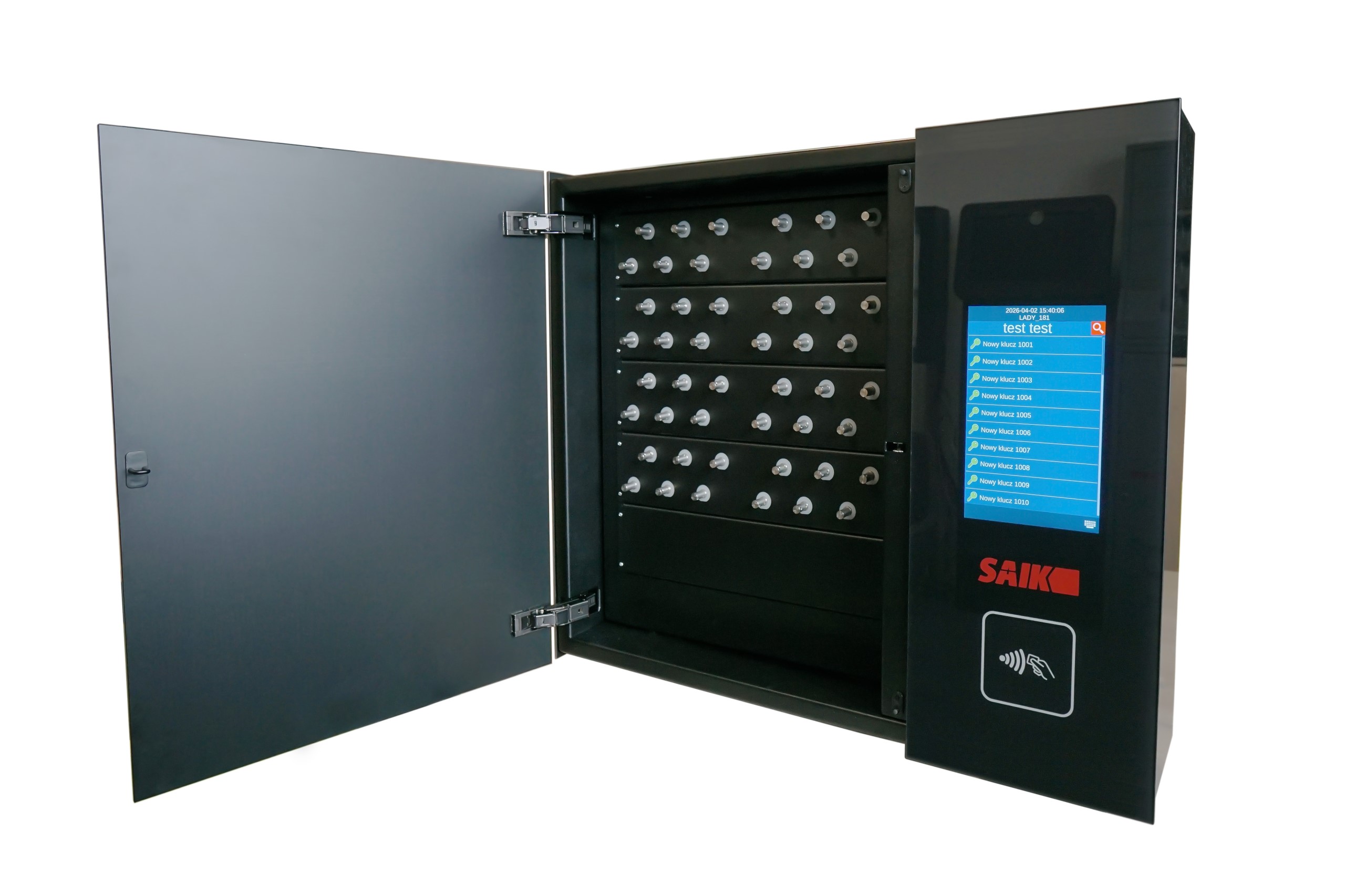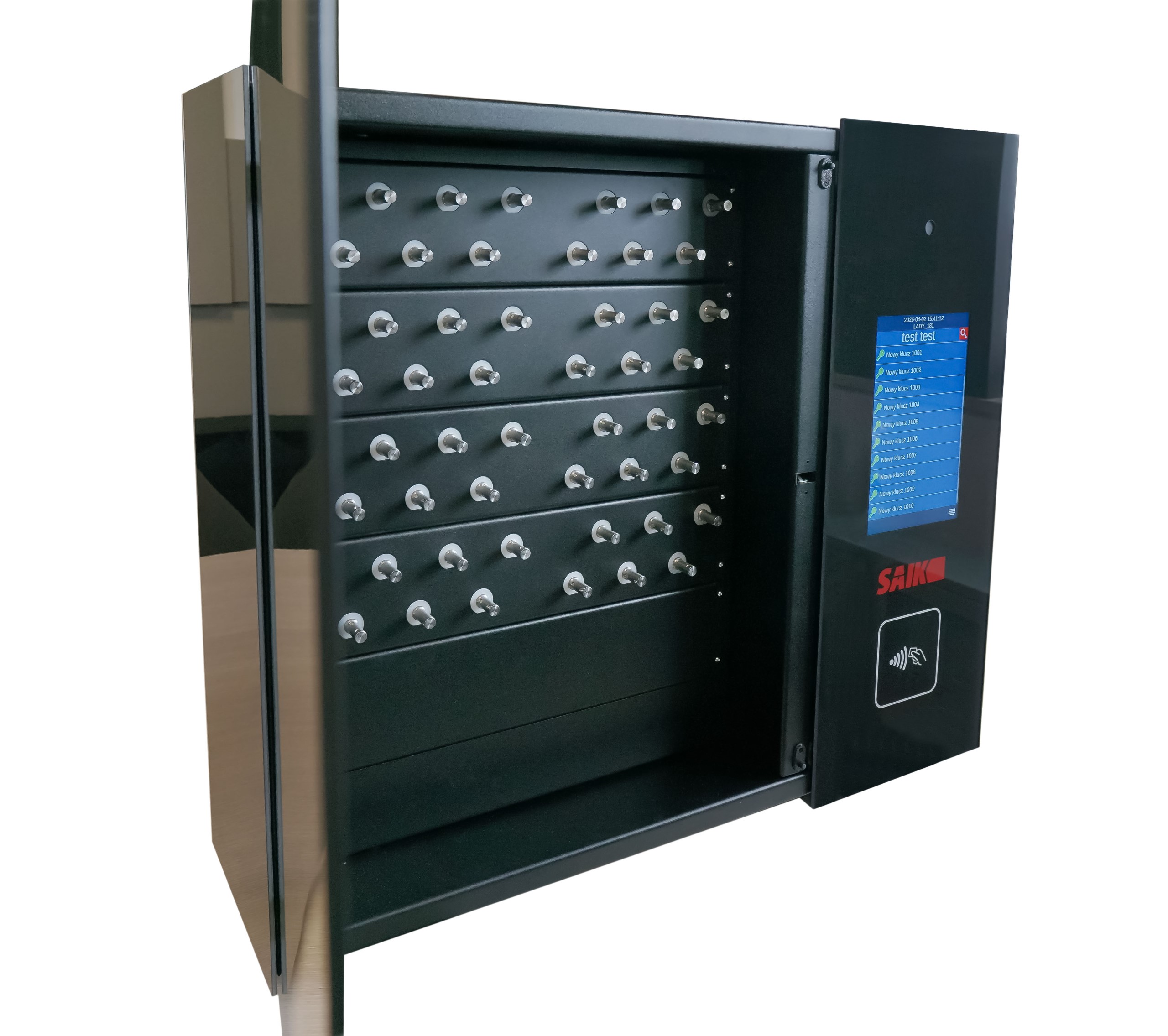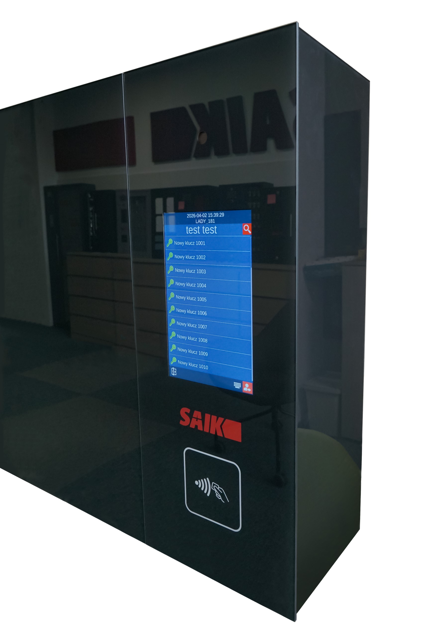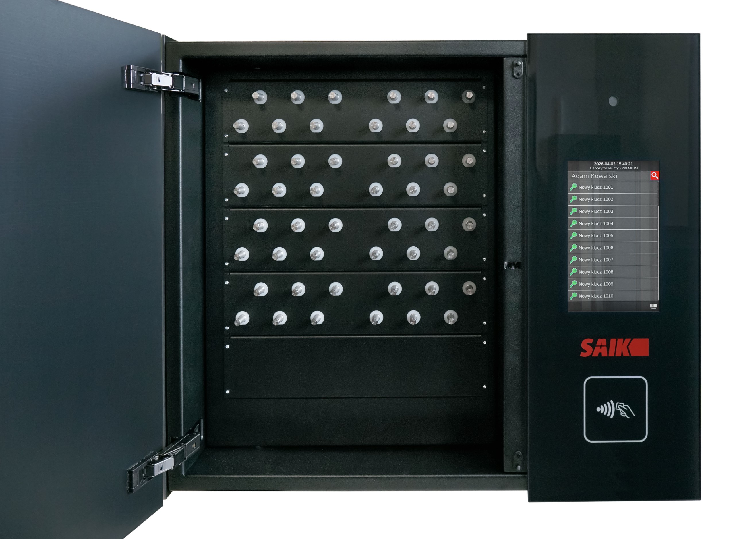 Bardzo solidna konstrukcja metalowa zapewnia bezpieczeństwo przechowania, a elementy ze wzmocnionego szkła dodają odpowiedniej prezencji szafce z kluczami. Wykończenie i klasyczny czarny kolor idealnie wpasuje się w większości głównych pomieszczeń nie tylko w nowoczesnych budynkach. W depozytorze SAIK PREMIUM możesz łączyć wiele typów skrytek i sposobów przechowywania. W przyszłości można jedynie zmienić typ modułu i funkcjonalność, urządzenie pozostaje to samo. Ta specjalna szafka łączy w sobie zalety pozostałych naszych urządzeń takich jak np.: SAIK MODULE, SAIK KEY, SAIK LOCK, SAIK KEYinBOX, czy SAIK BOX.